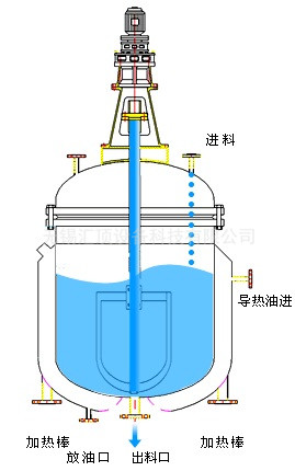 攪拌罐蓋上部配置有傳動裝置(電機或減速器),由傳動軸驅動攪拌罐內的攪拌器。